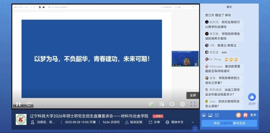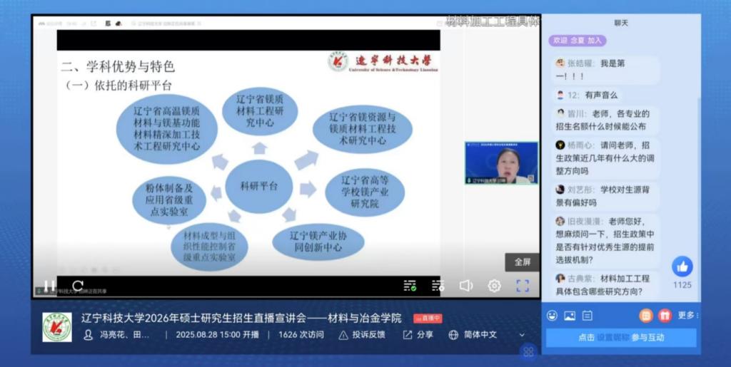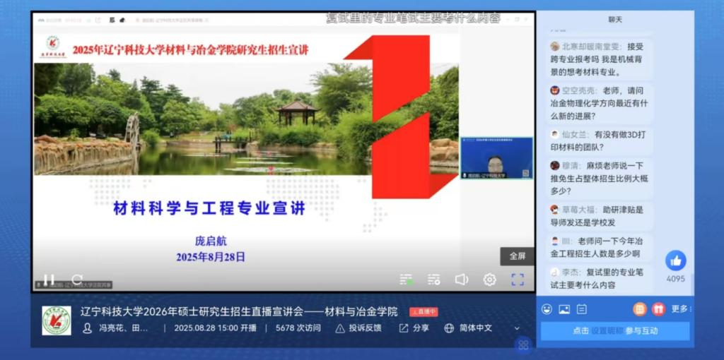8月28日,九州线上平台材料与冶金学院成功举办了2026年研究生招生线上直播宣讲会。本次宣讲会由学院副院长庞启航担任主持人。