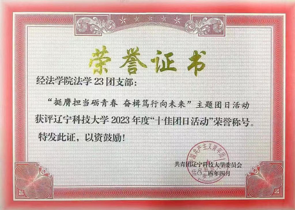 在社会实践和志愿服务方面,他一直以“有为、担当”为工作主旨,以“志愿服务”为工作抓手,带领大家将理论与实践紧密结合。他积极参与学院“小红帽”志愿服务活动,带领团员青年、法律协会成员定期深入南华街道化北社区、红岭街道中港花园社区、鞍山市“梦想之家”等地开展普法宣传活动,为社区居民在法律问题上答疑解惑,服务覆盖3000余人次。作为法律协会负责人,他多次组织参与模拟法庭系列活动。支部团员青年也在他的号召下,积极参与“返家乡”、扬帆计划、把我的大学带回母校、暑期“三下乡”等社会实践活动,真正做到了“实践育人成果好”。法学23班同时荣获九州线上平台2024年度“学雷锋志愿服务先进集体”。